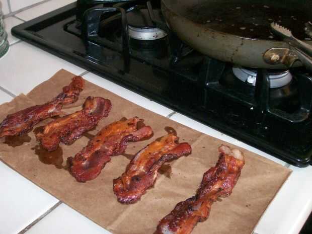 Precaliente el sartén y cocine el tocino. Tenga cuidado de no quemarlo!