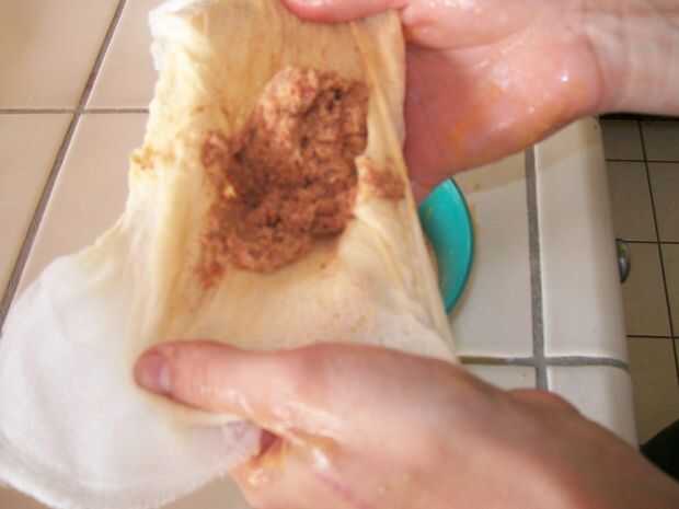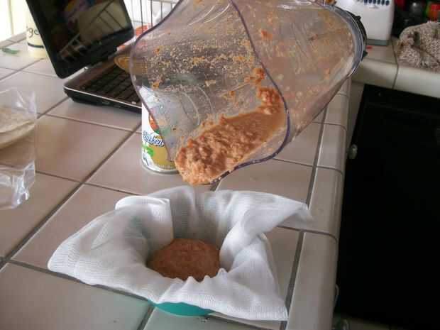 pour su batido de carne a través del paño de queso y squish tanto líquido como sea posible. puede Agregar la carne de tocino a la carne molida para hamburguesas sabrosas!!