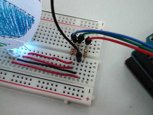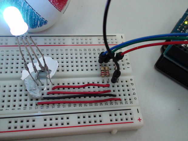 Con esto se reunieron algunos componentes, nos puso juntos! Que color usar los cables rojo, azul, verde para representar los colores de lo LED y negro para tierra, sentí que era más fácil para mí conectar los cables.