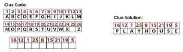 Los códigos pueden ser tan complejos como quieras hacerlos. Estos son algunos ejemplos. Google "códigos de la caza del tesoro" y tendrás más de lo que necesites para los códigos.