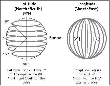 Este es el punto de referencia para el resto del planeta. Le llamamos a esto el punto cero. Desde el punto cero de que la tierra se separa en latitud (líneas vertical de polo a Polo) y longitud (anillos horizontales que el paralelo de la tierra al Ecuador por encima y por debajo de ella) desde el punto de cero cualquier latitud que está al oeste de este punto es un número positivo hasta 180.000000. Cualquier latitud al este de este número es un número negativo hasta-180.000000.