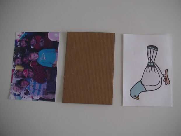 3. Cortar un trozo de papel de las mismas dimensiones que la foto y cartulina. Debe tener una imagen de su pista (en nuestro caso una paloma).