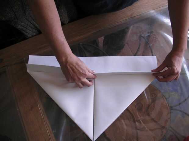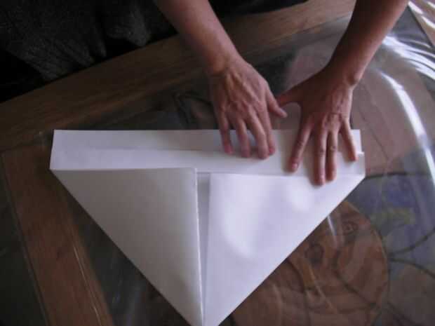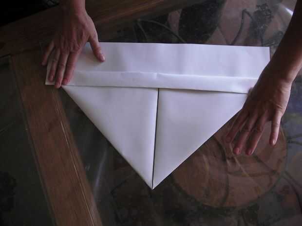 - Haga una marca en el medio el lado doblado (todos los bordes están abiertos). Que el borde de la línea de plegado horizontal y vertical, formando una doblez en la marca media. Mira la foto pirate_hat6.