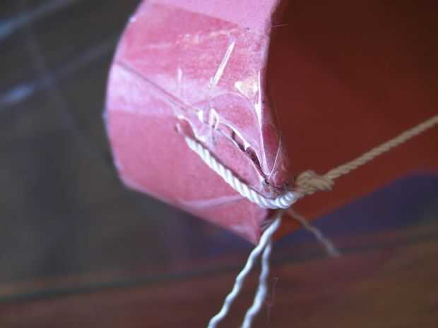 - Hágale un agujero a través de la cinta en ambos lados. El extremo del hilo de rosca de 17" trozo de cuerda a través de una agujero y ate a sí mismo. Lo mismo para el otro extremo.