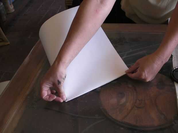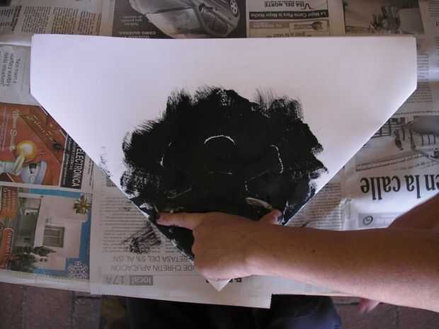 - Voltee el papel. Coloque la plantilla sobre el papel. Sujetándolo firmemente, pintura en y alrededor de él.