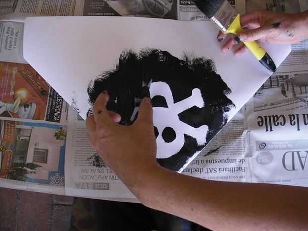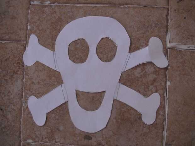 - Dibujar una calabera en una hoja de papel y recortarlo. Asegúrese de que usted también recortar los ojos y la boca.