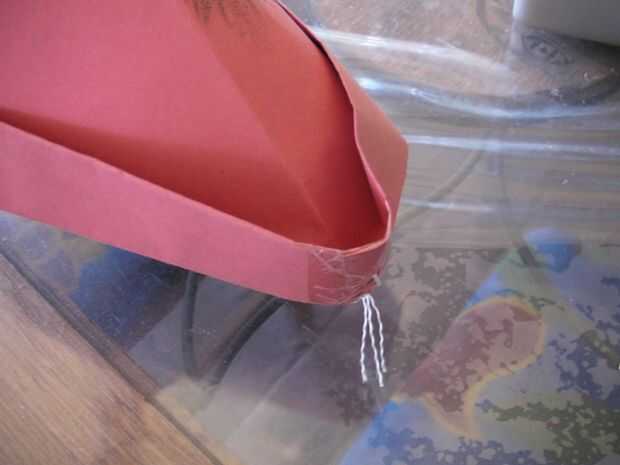 - Abrir el sombrero y poner unas cintas en las esquinas. Esto no sólo ayuda a mantener Unidas, sino que también da fuerza un poco la cuerda (correa del bolso).