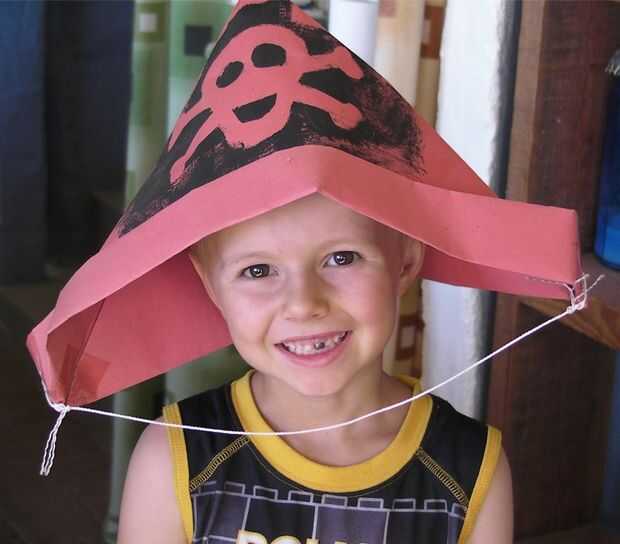 El primer tesoro que dio a los niños era un sombrero de pirata. Podrían ponerlo para un poco mientras que, pero en cuanto encontraron el segundo tesoro, tuvieron que Dale la vuelta y usarlo como una bolsa. Pensé que era más divertido que hacer un bolso de fiesta tradicional, ya que sería capaces de jugar con esto más tarde sin que sus padres gritando, "tomar esa bolsa de la cabeza!".