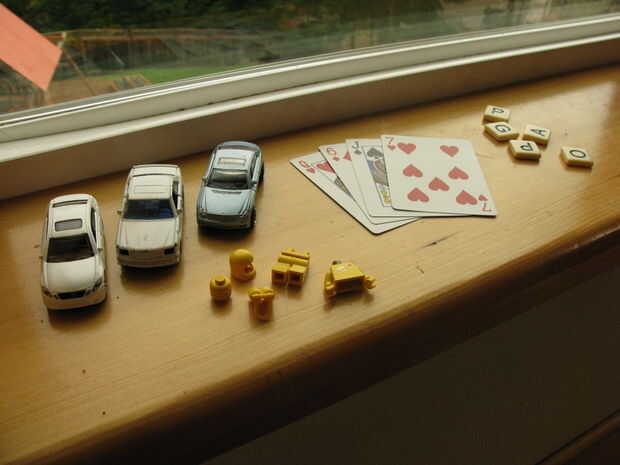 Hay toneladas de tesoros sentados a tu alrededor ahora mismo. La primera vez que hice esto he utilizado un montón de cartas de Pokemon, uno de mis sobrinos tenía sentados. Más adelante, a mis suegros usé algunos jugando a las cartas. Mi hijo pensó que era divertido para tomar algunos de sus pequeños modelos de Lego y romperlos aparte y ocultar las piezas. Algo relativamente pequeño y fácilmente oculto que usted tiene un montón de obras grandes. En caso de que las cosas se pierden en el shuffle no puede ocultar nada importante como los diamantes de la familia o medicamentos anticonvulsivos de la abuela.