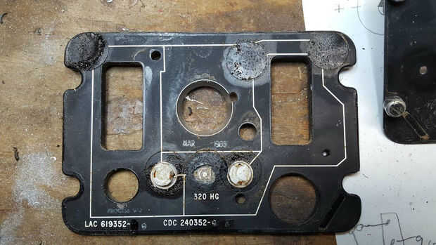 El panel de la bomba estaba lleno de mucha suciedad probablemente de sentado bajo la lluvia desde 1961 en algún depósito de chatarra. Después de abrir el panel, corte los cables de los interruptores. Los interruptores estaban lleno de barro así que se los llevó aparte, limpiado y montarlo a trabajar bien. Por suerte la 6 posición, 6 polos selector interruptor trabajada grande. También tuve que desarmar el panel porque las lámparas de panel retroiluminado (28 vdc) aunque eran buenas no se enciende.