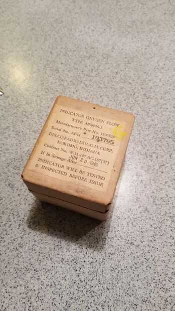 También pensé que la lámpara necesita algunos ordenar de un metro... así que ¿qué mejor que un nuevo medidor de flujo de oxígeno de un B-17? Cuidadosamente pelados la etiqueta de la caja y había pegado al lado de la caja de munición. El metro tiene dos tiras de metal que abren y cierran "parpadea" cuando se aplica el flujo de aire a la parte posterior en el calibrador. Mientras parpadeaba en el avión, usted tenía oxígeno a la mascarilla!