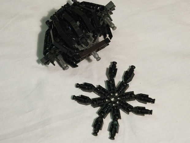 En este paso se iniciará el TIE-Fighter, haciendo el habitáculo. Empezar haciendo una conexión interna entre las alas. Anexar los cañones, la parte frontal y el esféricos conectores de 4 vías. Más adelante agrega conectores adicionales y el back-end para hacer la esfera completa. Luego añades los propulsores y por último terminar con la parte inferior de cierre (pero así que puede todavía ser aparezca)