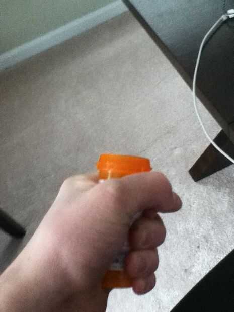 Primero muy bien una buena imagen de las lentes. Encontré el Ecto-anteojos juguete de Mattel en amazon, usted puede acercarse a las lentes. Haga clic aquí para ir a la página. Ahora a comenzar a construir. Encontré un antiguo contenedor de Philips que mentía alrededor de la casa. Tomar el recipiente y cortar la parte superior. Tomar uno de los... naranja píldora cosas y traza un agujero en el lado sin cortar el envase de Philips. Ahora empuje y lo que enrosque el tapón debe pegarse hacia fuera. Ahora toma un pequeño taco de madera y cortarlo a la longitud deseada. Haga un orificio en el lado y asegúrese de que el pasador puede caber en ella. Pintura de aerosol la lente negro y el pasador de plata.