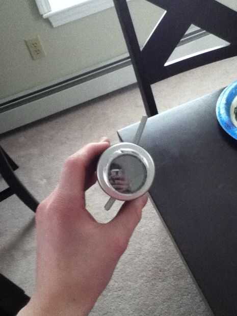 Tomé un par de gafas de sol baratas y sacó los lentes. Había descrito la lente con marcador plateado y recortarlo. ajuste. que a la longitud correcta y luego caliente había pegado.