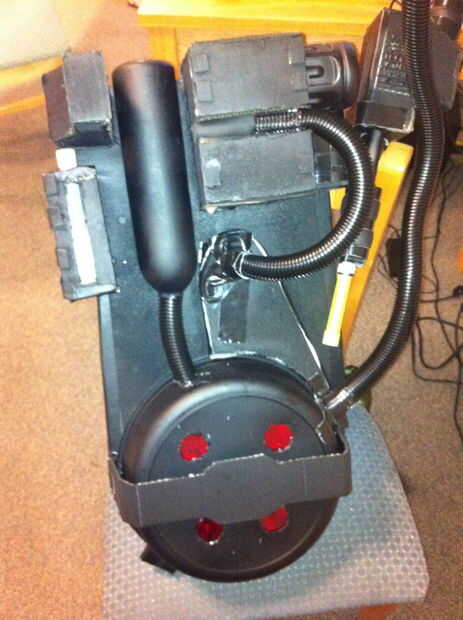 También utilicé cartón adicional para que se vea un poco más auténtico. Como agregar la parte algo triangular arriba el ciclotrón, junto con la parte a superior del ciclotrón para que se vea como él sujeta.