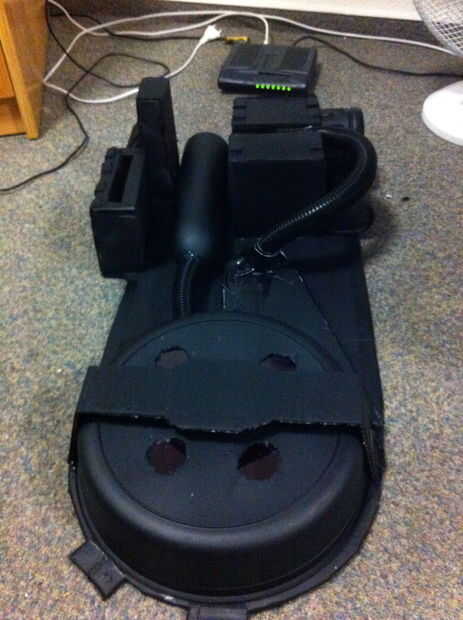 Usé la tubería adicional para que se vea como fue conectado juntos. (Pegar donde sea necesario) Junto con espuma de tubería de revestimiento para los tiradores de tubo (no se puede realmente ver desde aquí). Gorila les grabó en y la cinta gorila les dio más de un agarre para aferrarse demasiado.