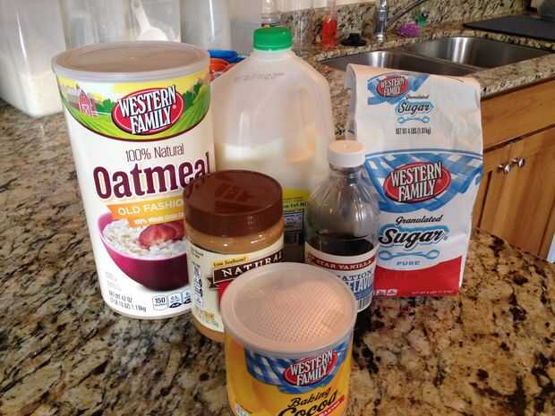 cómo no hacer deliciosas y fáciles hornear galletas!Paso 1: Reunir los ingredientes: blanco de 1 3/4 tazas de azúcar1/2 taza de leche1/2 taza de mantequilla4 cucharadas cacao en polvo sin azúcar1/2 taza mantequilla de cacahuete crujiente3 tazas de av
