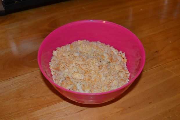 Desmenuzar un paquete de Ritz y vierta en un tazón pequeño.