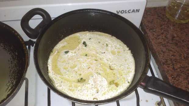 Añada al vaso de leche una cucharada de maicena para espesar la salsa. La leche debe estar fría o se hará grumos desagradables. Luego la leche a la crema caliente.