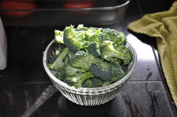 Mientras se cocina el arroz, cortar el brócoli y colocarlo a un lado (si se usa fresco).  También, cuando el arroz está casi listo, puedes empezar a preparar la cebolla en la mantequilla (si lo usas).