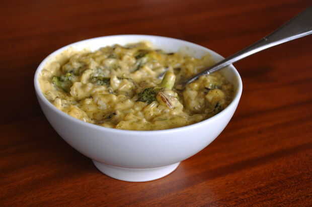 Desplazamiento de alimentos – brócoli, arroz y queso de rayar para uno... o seis