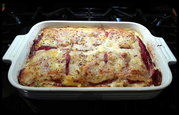 Cuando un amigo me habló de esta receta de cazuela de Rubén, yo no podía esperar para probarlo. Con algunos ajustes y modificaciones aquí y allá, finalmente se estableció en esta versión como mi favorito. Viene juntos fácilmente, no requiere ningún equipo especial y utiliza solamente un pote (bien, cazuela). Horneado lentamente tiene un delicioso sabor y textura maravillosa que se que gustará a cualquier amante de esa cecina y la bondad de sauerkraut llamado Reuben la.