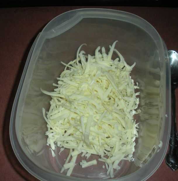 Triturar aproximadamente la mitad de un bloque de queso, puede usar preshredded pero no creo que se funda la misma, espolvoree sobre la cacerola y volver al horno hasta que se derritan