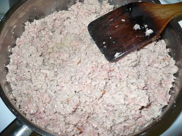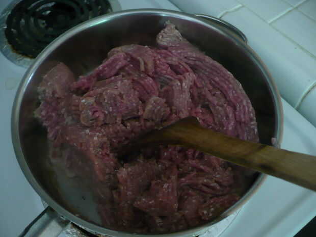 Coloque el pavo molido en la sartén y cocine hasta que la carne si está totalmente hecho, para que no se ve roja. Pongo mi configuración en 6. No estoy seguro, pero creo que es equivalente a 300 º f.