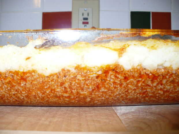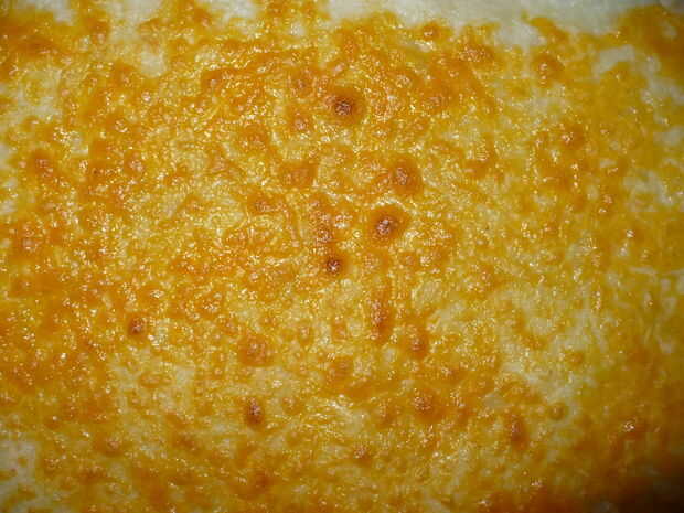 Asar el recipiente entero con papas, carne y queso. Asar a la parrilla durante cinco minutos.