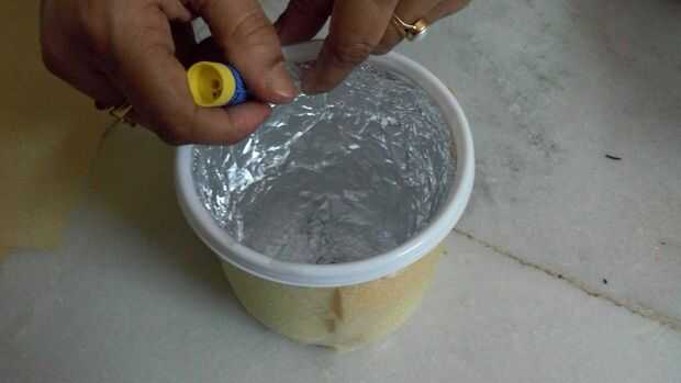 Repita el mismo proceso y cubrir el lado exterior de la tapa con la esponja.