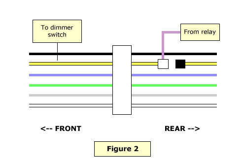 A continuación, volver al conector de bloque y localice el cable negro en el lado del interruptor (en la parte delantera de la moto). Este alambre va desde subfuse A y lleva corriente en el interruptor de la bocina. Como con el cable amarillo al lado del telar, quite el perno correspondiente o corte el cable de una pulgada y media del bloque. Si el anterior, empalme un cable nuevo a la actual negro cable, conecta ambos a un nuevo pin y localiza el perno en el bloque. Con este último método, Monte un conector bala al extremo cortado del cable negro atado bloque. Enlazar un nuevo cable al otro extremo cortado, inserte el conector de la bala y prensado (ver figura 3).
