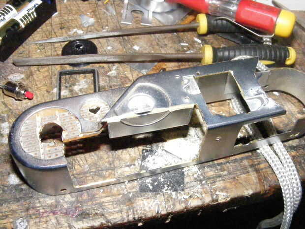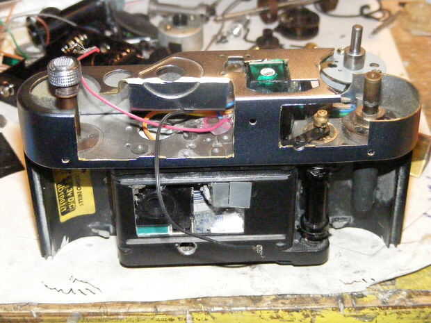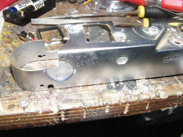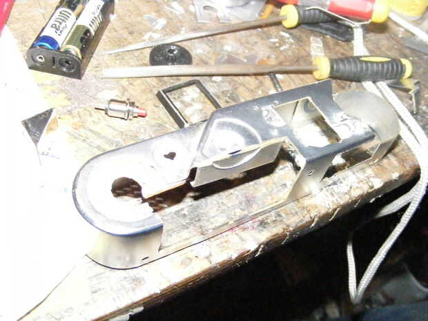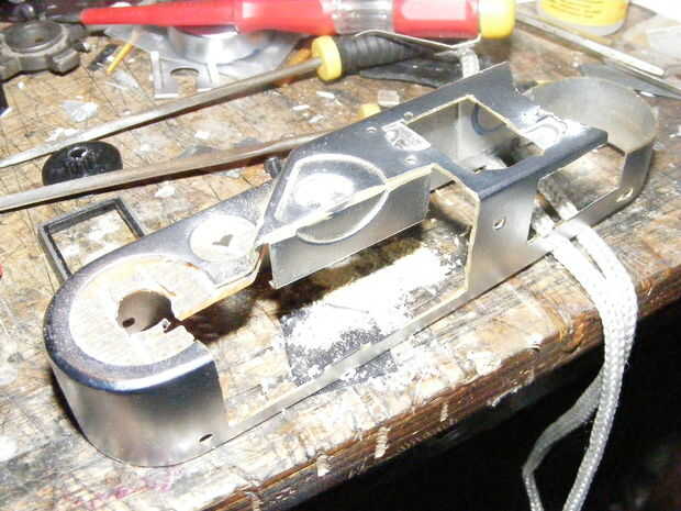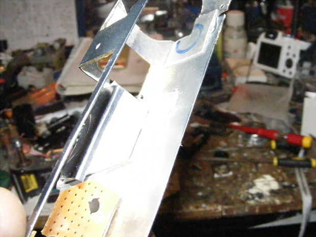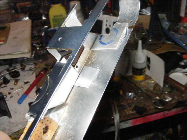 encontrado en algún lugar agradable para las baterías, pero el control eléctrico se obtiene en el camino donde habría puesto el prisma, visor así no complicado para esta cámara... Ahora pegue trozos de tablero de pista en el interior de las áreas donde no quiero agujeros, usar metal fino donde el espacio es una prima.