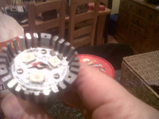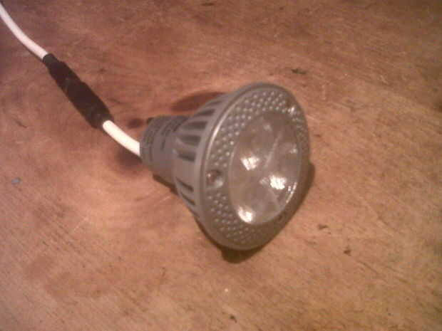 la cápsula de la electrónica y la tapa parecen una sola unidad, pero apenas puede levantar la tapa. En el otro extremo, calientan los terminales GU10 hasta que derritieron el plástico y empujaron a. Si desea mantener los terminales necesita perfore los agujeros de perno de sujeción.