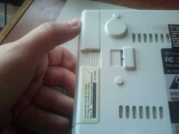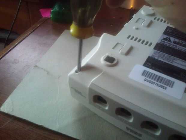 Ahora empezar girando su dreamcast y deslice hacia afuera el modem, hay un tornillo oculto debajo de él quitarlo y luego proceda con los otros 3 teniendo tornillos uno en cada esquina de la dreamcast. Una vez que tengas los 4 tornillos que quitó cuidadosamente vuelta a vuelta la dreamcast y deslice la parte superior de la concha.