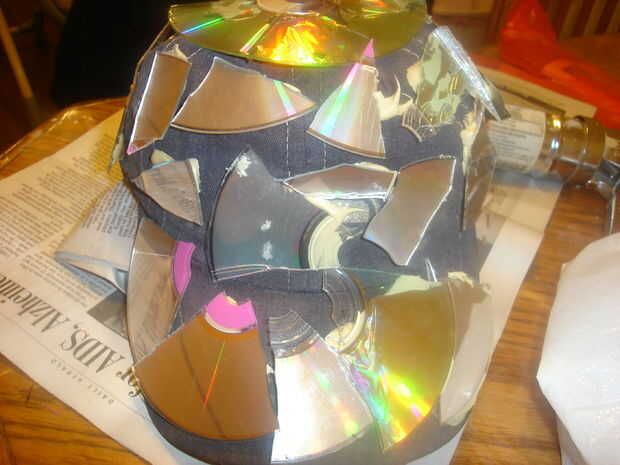 me noté una pila de CDs muy viejos en mi escritorio (cosas como Encarta 2000, 65.000 imágenes prediseñadas, etc..). Lo primero que pensé fue "OOOOHHHH brillante". Lo siguiente que pensé fue "Hmm, tal vez podría hacer algo fuera de la luz hasta el concurso de la noche (desde brillante == reflexivo). Así, ya que me gusta romper cosas (que no), se rompió para arriba el CDs y había pegado a un sombrero. Me siento como que estoy simplemente rompiendo un medio completamente nuevo. Tengo muchos más CD ' s (sólo noté una pila de viejas Linux Distros he quemado los años). ¿Quiero decir, que no quieren usar fragmentos de plástico roto en la ropa? Mi esposa va a amar esto!