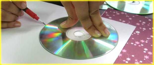 En primer lugar, coloque el CD en el lado en blanco de papel de colores y con la ayuda de un rastro del lápiz el contorno.