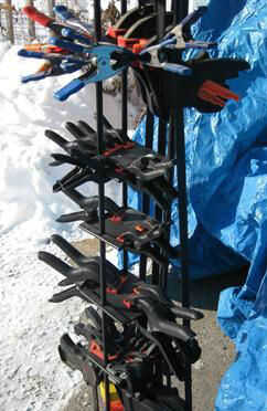 Empecé por poner mis pinzas de carraca en primera. El más largo en la parte superior, con las barras colgando hacia abajo.
