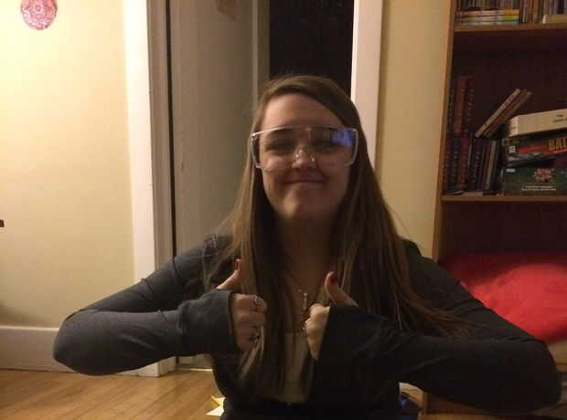 Poner en un par de gafas para proteger los ojos en caso de que un pedazo de CD vuela en la cara.