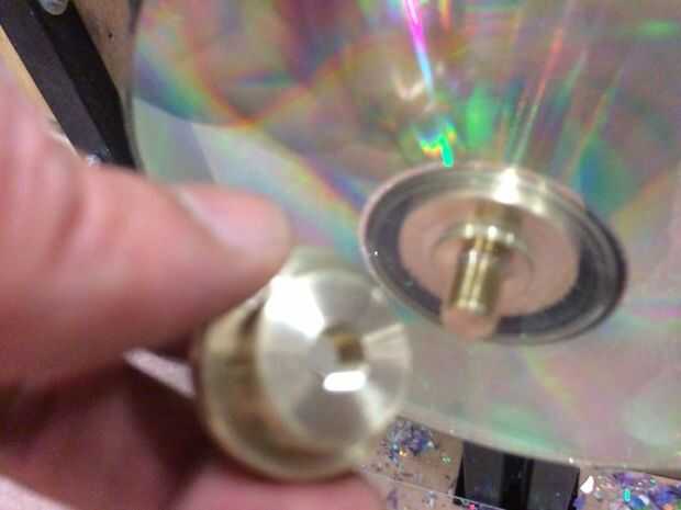la parte difícil fue el montaje de CD en el eje del motor. He intentado utilizar diferentes tipos de frutos secos pero montar el CD estaba tomando mucho tiempo con una llave para bloquear y desbloquear el CD, luego este chico me ayudó con el torneado de una pieza de metal que puede ser fijo en el eje que contiene el CD y puede apretarse con la mano "cualquier otra sugerencia es Bienvenido"!