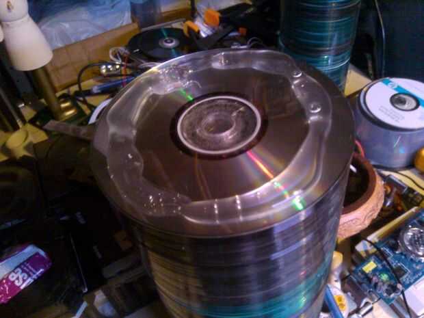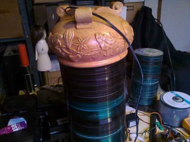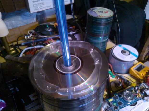 Siempre me gustó la manera luz brilla a través de discos CD y DVD y he pensado que una vieja pila de discos sería una lámpara fría. Sin embargo, simplemente iluminando un montón de CDs no se vería muy emocionante.Por lo tanto, se me ocurrió la idea d