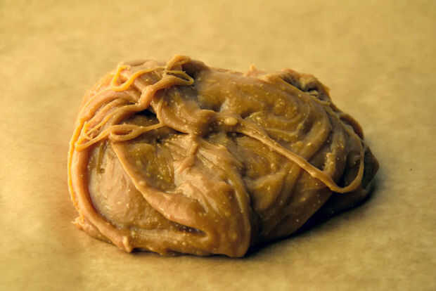 A continuación, retire la mezcla del recipiente y envuelva en papel encerado. Poner en la nevera durante varias horas.