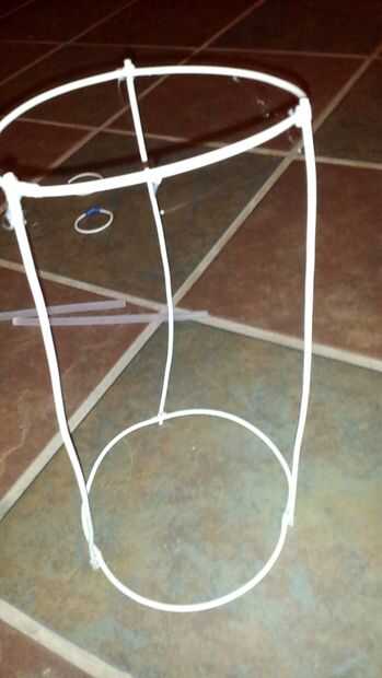 Necesitas dos círculos de alambre que son cerca de 5 pulgadas de diámetro (aproximadamente tan grande como la mano cuando plana). Ignorar los círculos más pequeños, eran sólo ver si la cinta se mantenga. A continuación, el resto de su cable se utilizará para hacer cuatro vigas de soporte - serán unos 10 a 12 pulgadas (el tamaño de un macho adulto zapato xD) en la foto se puede ver el esqueleto de este proyecto antes de que tenga pantalla envuelto alrededor de él, pero le falta un rayo. Y para la última parte de la preparación necesita un rectángulo de la pantalla que se envuelva alrededor de los círculos y que es de alrededor de 12 pulgadas o tan de largo.