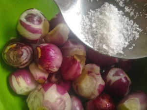 Agregar sal a las chalotas crujientes hasta les ayuda mejor y también agrega sabor.