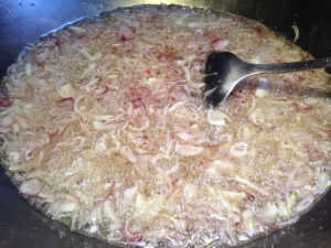 Cebolla frita de floración