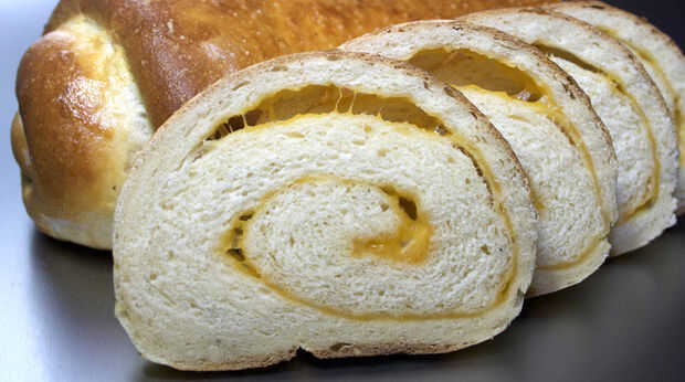 La costra de sal realza el sabor de la masa madre como el pan y el molinete de queso fundido. Este pan se congela gran y unos segundos en el microondas hace que degustar como es sacarlo del horno.