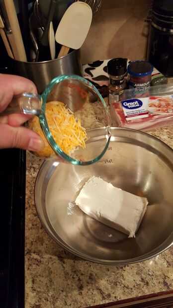 Poner el queso crema y 1/2 a 3/4 taza rallado queso en un tazón, luego salir de la sartén y hacer con el tocino Cookin '!