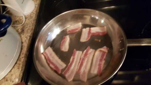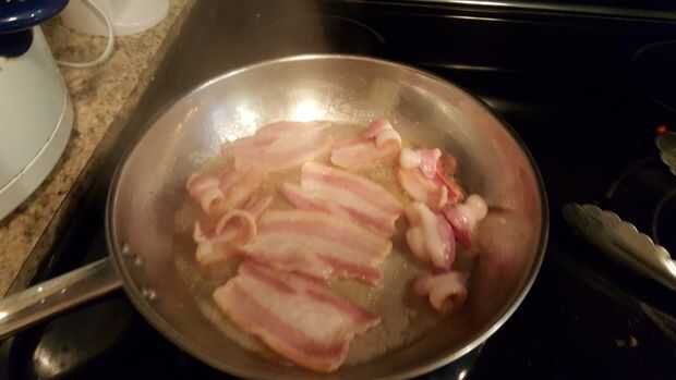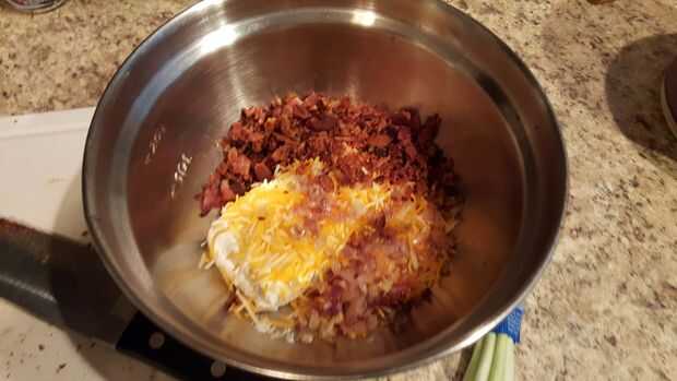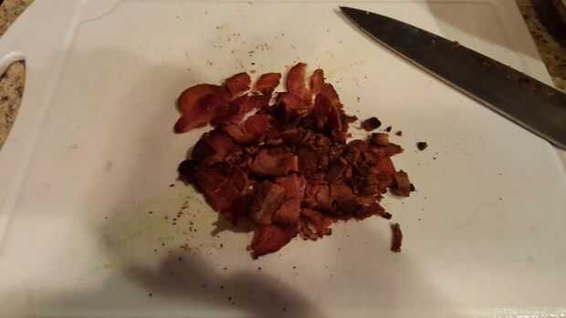 Una vez que el tocino se haya enfriado lo suficiente como para ser manipulado, picar en pedacitos de tocino y agregar al bowl con la bondad de pacotilla.