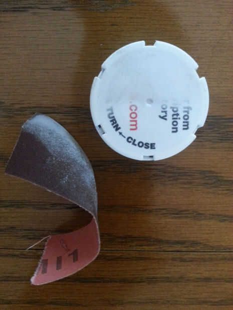 Tomar un pequeño trozo de papel de lija y la arena de la escritura en la portada grande. Esto evitará que alguien inadvertidamente pensando que es una cubierta de la botella de prescripción más.