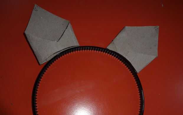 A continuación, aplanar las orejas y en la diadema para tener una idea de dónde quiere ir. Dibujé una pequeña marca por lo que tendría una guía para ir cuando pegado.