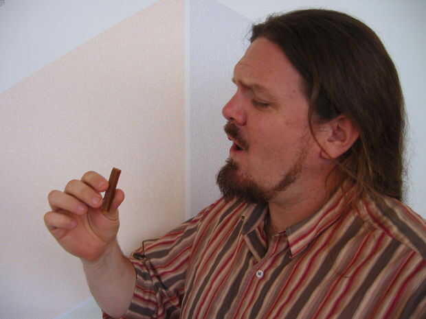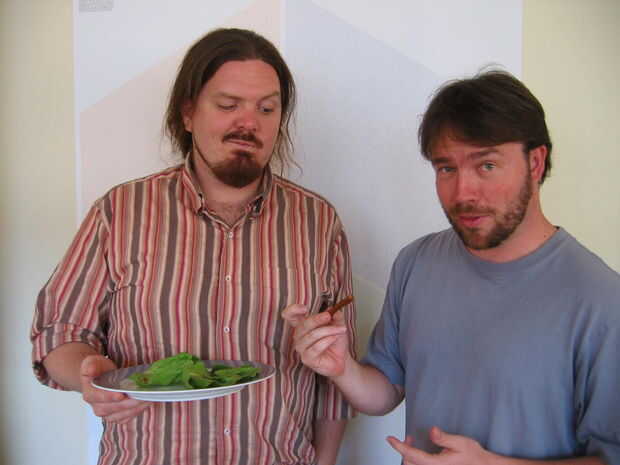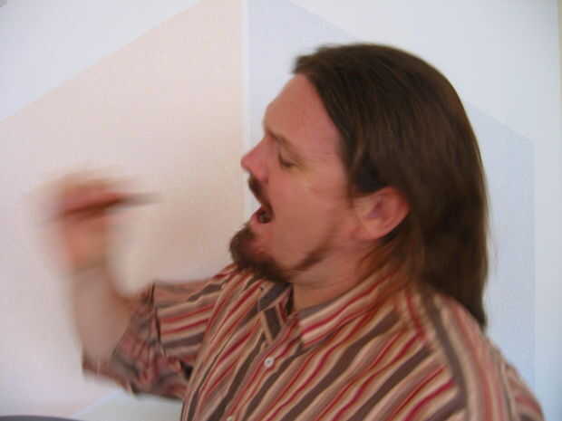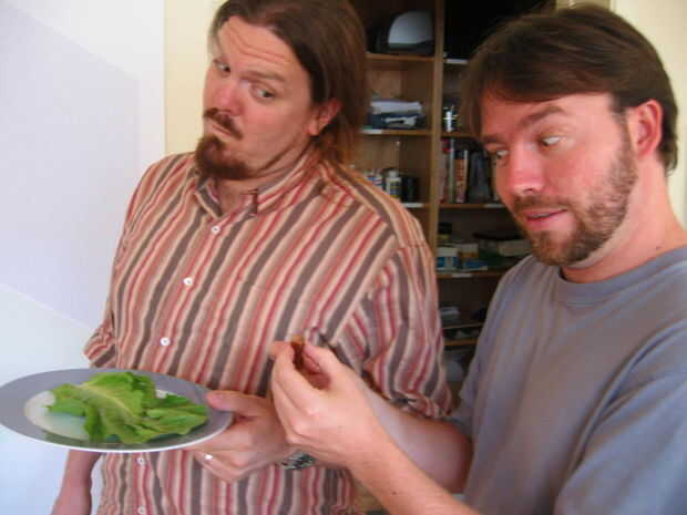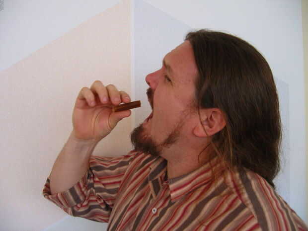 Sujeto B con confianza empuja la sustancia de la comida en su boca abierta, pero al intentar morderlo el brazo involuntariamente tiró lejos y no podía comer de cualquier.